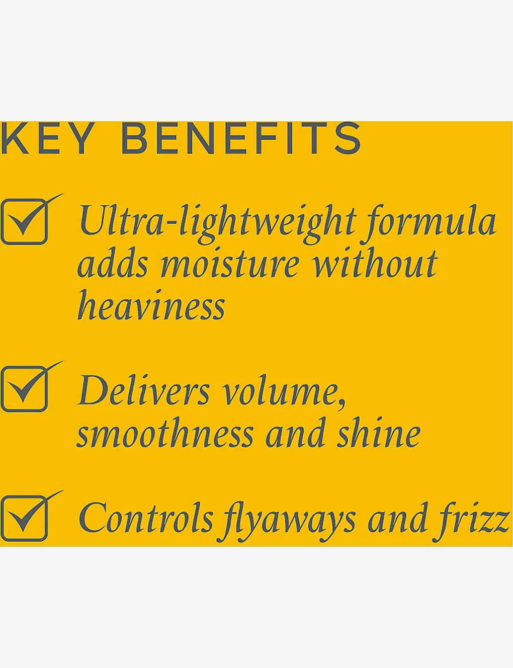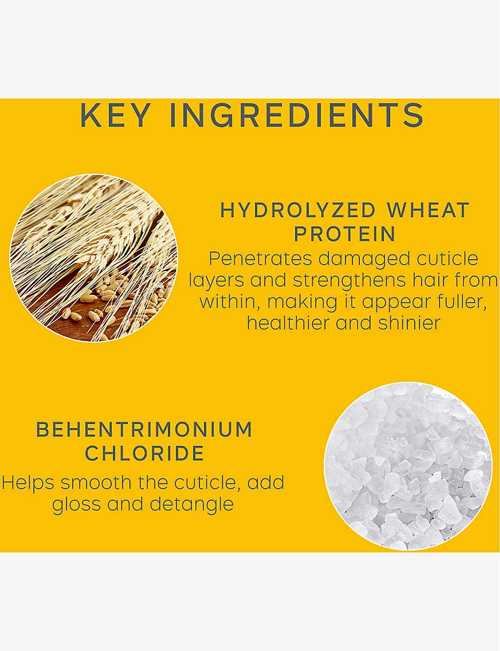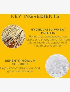 - Wheat Protein: to help strengthen, volumize and plump hair strands